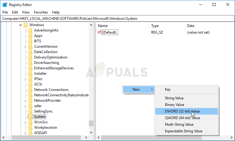 HKEY_LOCAL_MACHINE\SOFTWARE\Policies\Microsoft\Windows\System