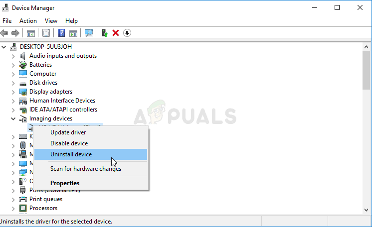 - The sections you need to visit are named Imaging devices and Biometric Devices. From the Imaging devices section, make sure you undertake these steps for your webcam. Inside Biometric devices, you can choose all entries. Perform the following steps for all devices. Right-click on each selected entry and choose the Uninstall Device.