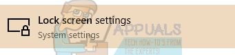 - Press Windows + S and type “lock screen” in the dialogue box. Open the first option which comes forth.