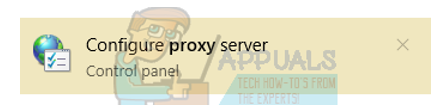 - Press Windows + S to launch the search bar of your start. Type “proxy” in the dialogue box and select the first result which comes forth.