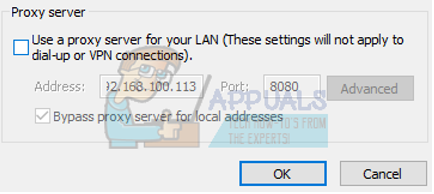 - Uncheck the box which says “Use a proxy server for your LAN”. Press Ok to save changes and exit.