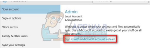 - Now navigate to Settings > Accounts > Your Account and select the option “Sign in with a Microsoft Account instead”.
