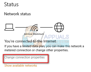 - Once in the Network and Internet settings, click on “Change connection properties” present under the subheading of Network status.
