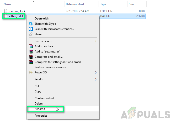 Renaming Settings.dat File - Similarly, change the name of roaming.lock to roaming.lock.bak and restart your PC. The same phenomenon will be observed in this case.