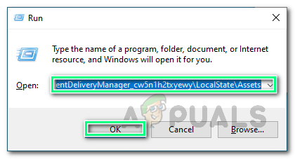 Opening Run Dialog Box - Copy-paste the following location address in the command space and click OK. This will take you to a hidden system folder named Assets where all overwritten settings of Windows features are available.
