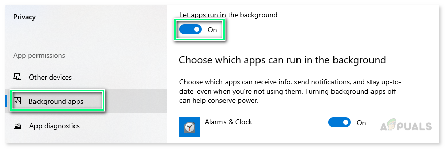 - Background Apps Execution Disabled: Windows Spotlight is one of the backgrounds running applications in Windows. Therefore, it’s only logical that if the background apps execution is disabled, Windows Spotlight won’t be able to run its processes. This will ultimately cause the problem under consideration.