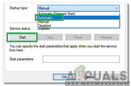 Selecting Automatic as the startup type and pressing enter - Click on “OK” and check to see if the issue persists.