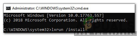Initiating Lxrun /install command Note: Try running this command in Powershell if it doesn’t work in Command Prompt.