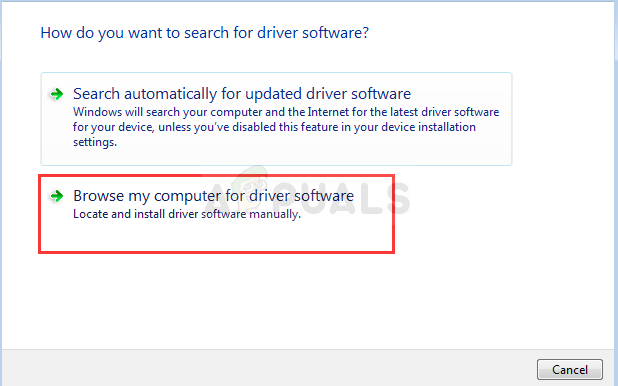 Updating the driver software for your default Imaging Device - Once you arrive at the first screen, click on Browse my computer for driver software.