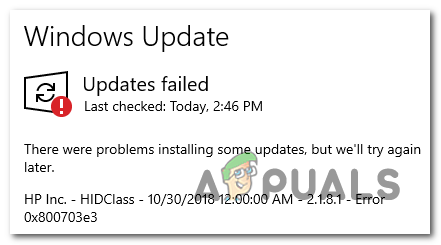 Some Windows users have been reaching us with questions after seeing the error 0x800703e3 when trying to perform a certain action. Some users are seeing this when they try to update their operating system, while others see it while interacting with a different service (such as the webcam app or a printer connected to the network). The issue is much more common on Windows 10, but there are some occurrences on Windows 7 and Windows 8.1.