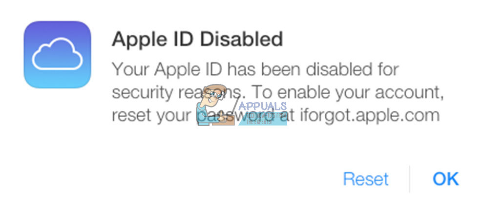 - Your Apple ID has been disabled.