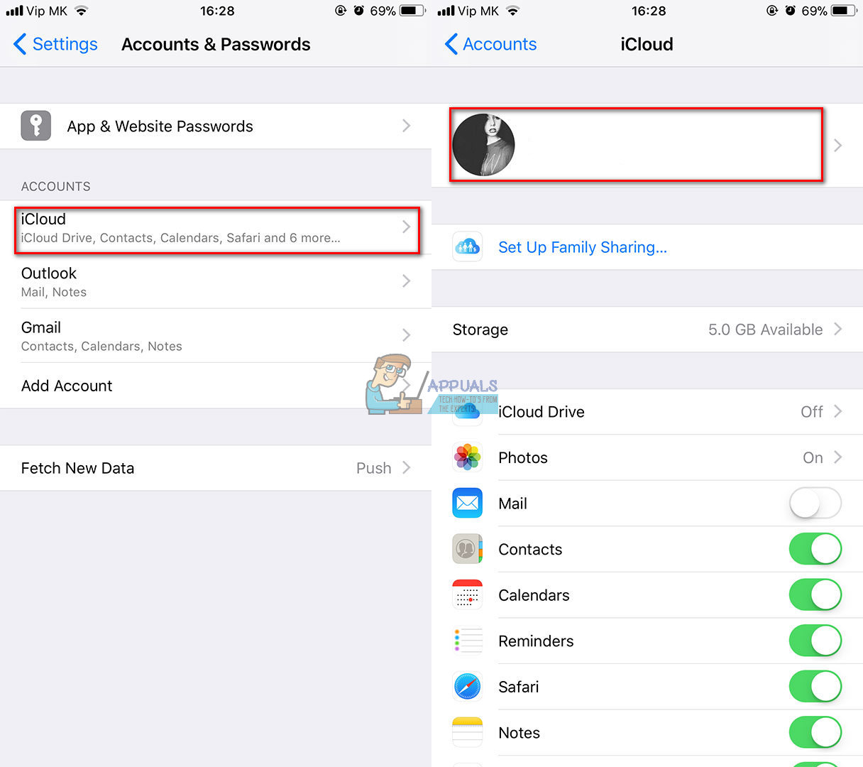 - Navigate to Settings, choose Accounts & Passwords, and then tap on iCloud.