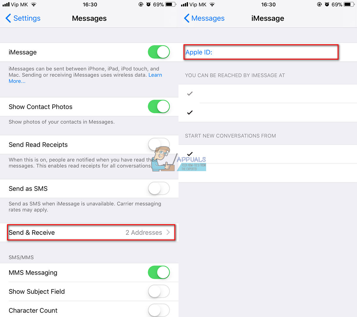 - Go to Settings, open Messages, and then select Send & Receive.