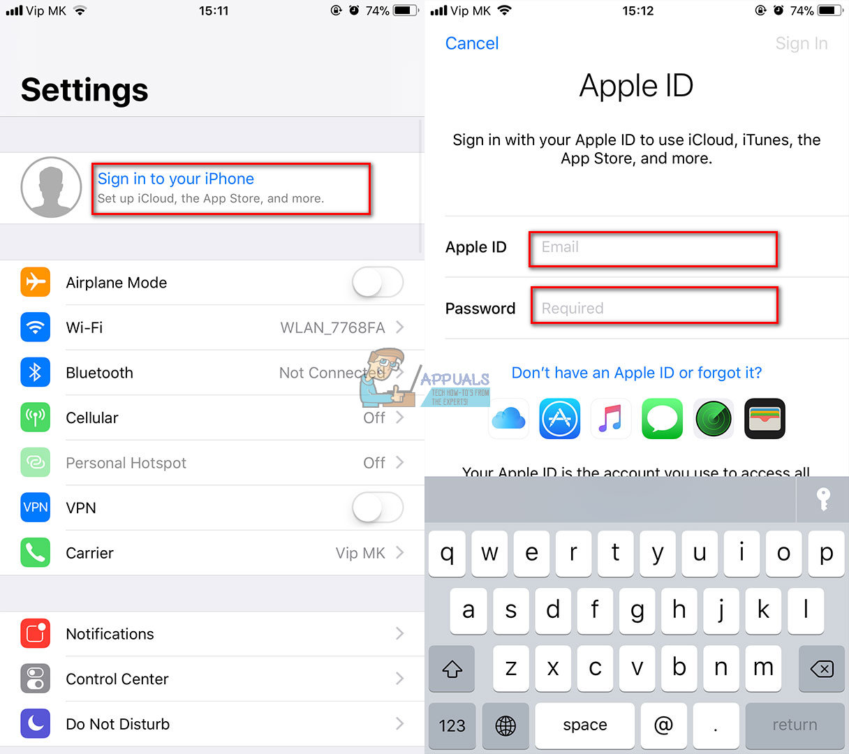 - Type your Apple ID and password.