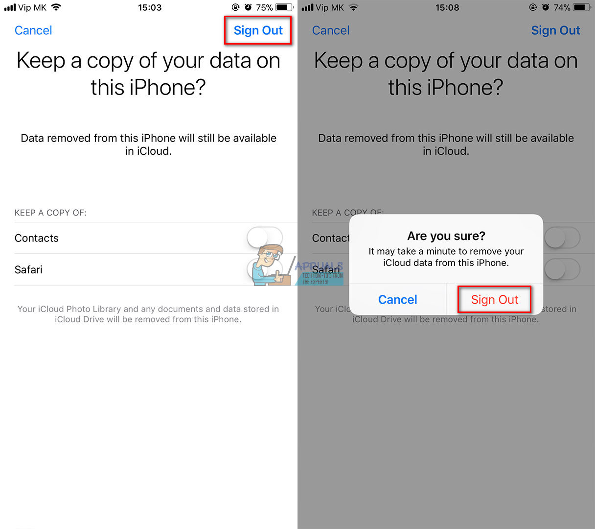 - Tap on Sign Out once again from the appearing window.