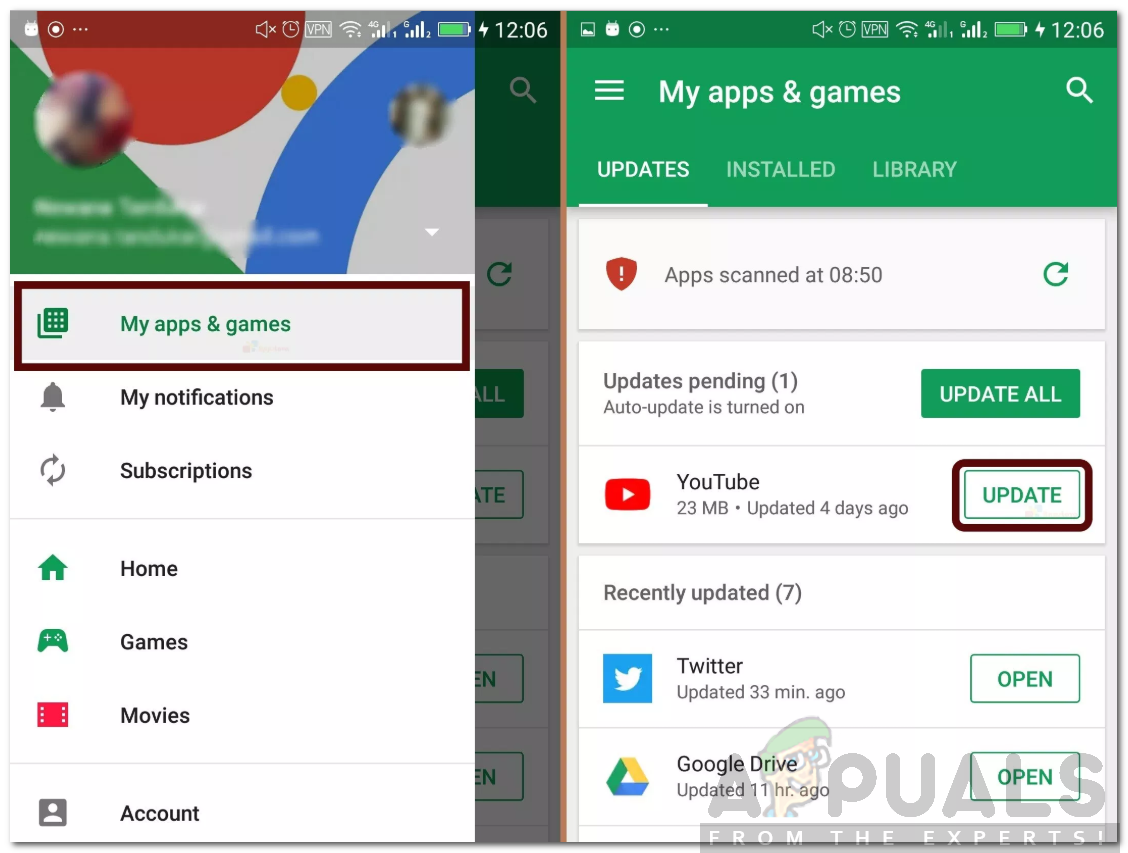 If the YouTube app on your device hasn’t been updated for a while, then you need to update it if a new version is available for your device. If the problem at your end was caused by YouTube app being outdated, then updating it to the latest version for your device may fix it. Updating an app on android device is quite simple, here’s how: