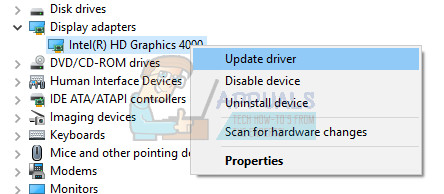 - Right-click on the adapter of your graphics card and select the Update driver option from the context menu. If you are using an integrated graphics card, there will probably only be one item on the list. If you are using an external graphics card, you can only update this one.