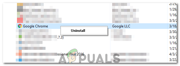 - Right-click on “Google Chrome” and select “Uninstall”.