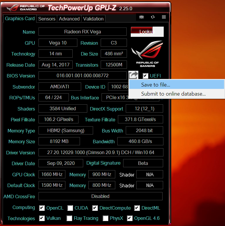 - Load up the “Backup Vega 56 BIOS” that you made and saved