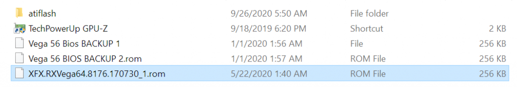 - Backup file of the existing BIOS (Vega 56 BIOS in this case)