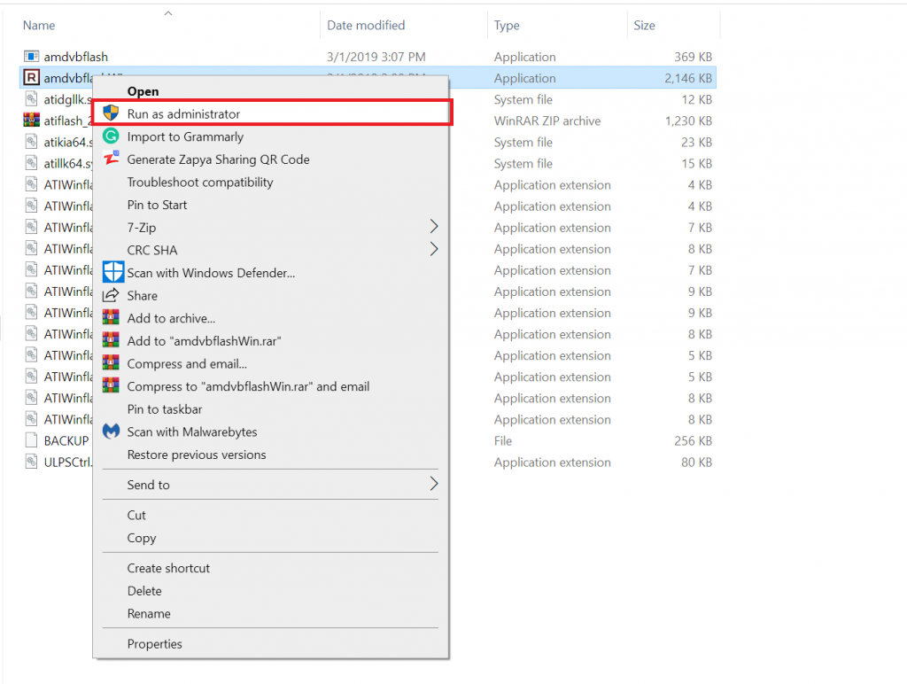 - Open the file named “amdvbflashWin.exe” as administrator.