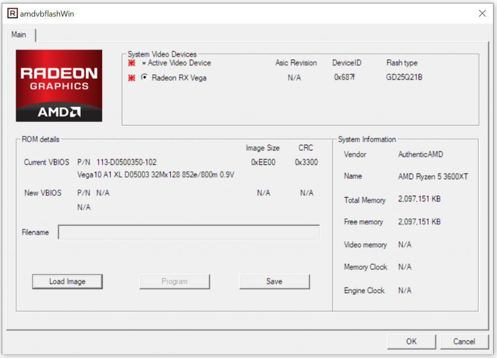 - The new target BIOS (Vega 64 BIOS here)