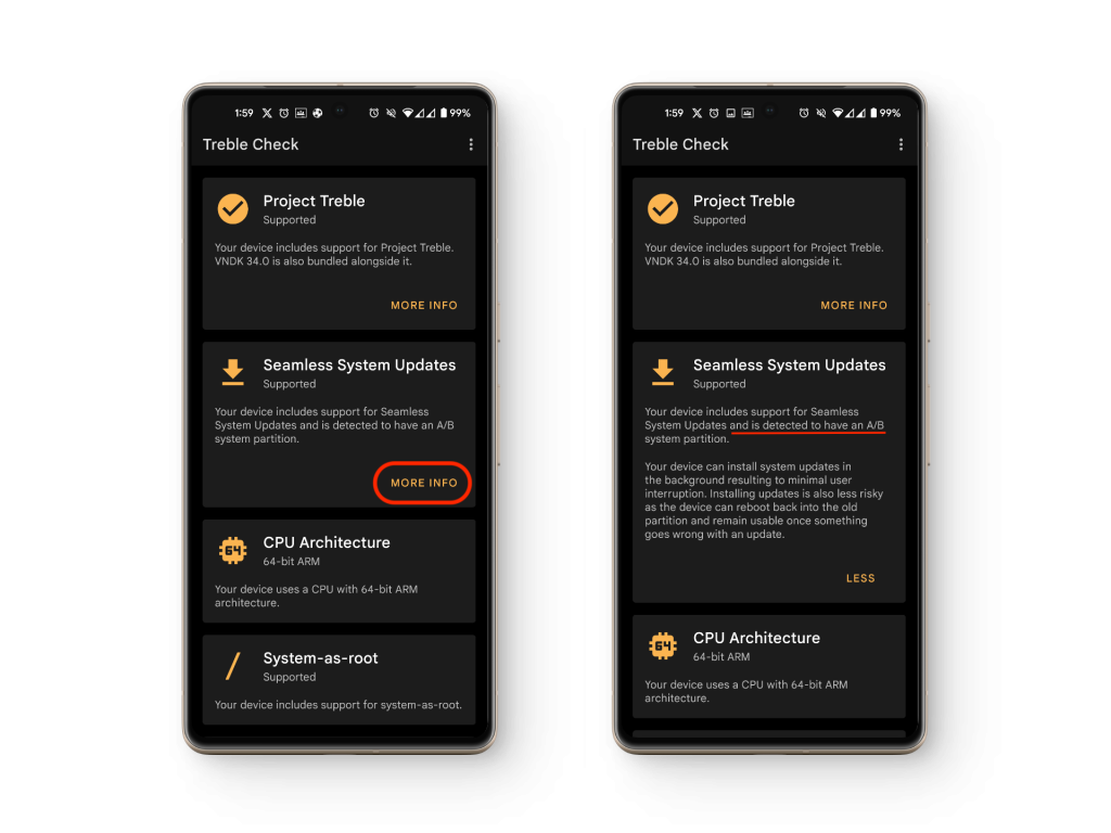 - If the app reads “…and is detected to have an A/B system partition,” then you have an A/B partition, otherwise your devices uses a single A-only partition.