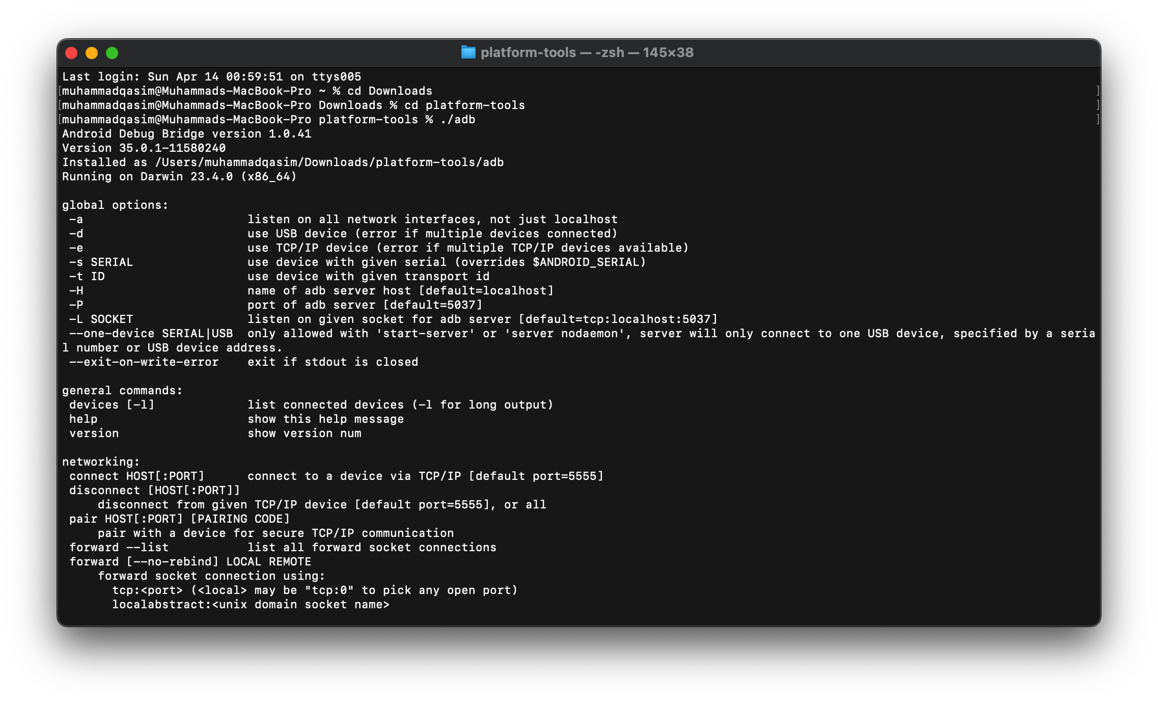 Accessing ADB on macOS - This Command Prompt (Windows) or Terminal (macOS) window will be used to push the ADB commands for flashing TWRP.