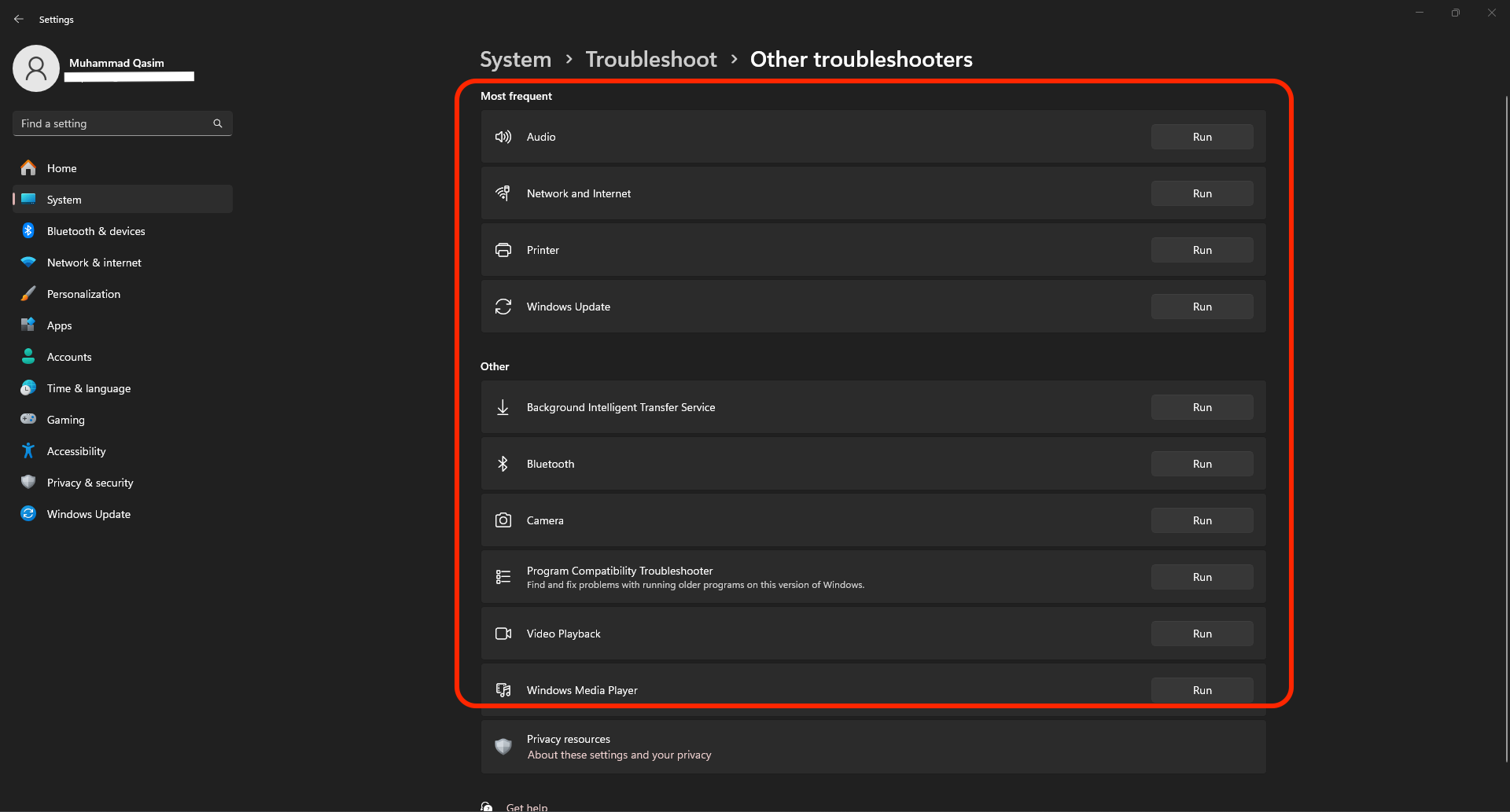 Windows has a number of troubleshooters for different aspects of your PC, including but not limited to Network & Internet, Audio, Updates, and more. Just open Settings and go to System then click on Troubleshoot. You’ll see a list of options with the “Run” button right next to them.