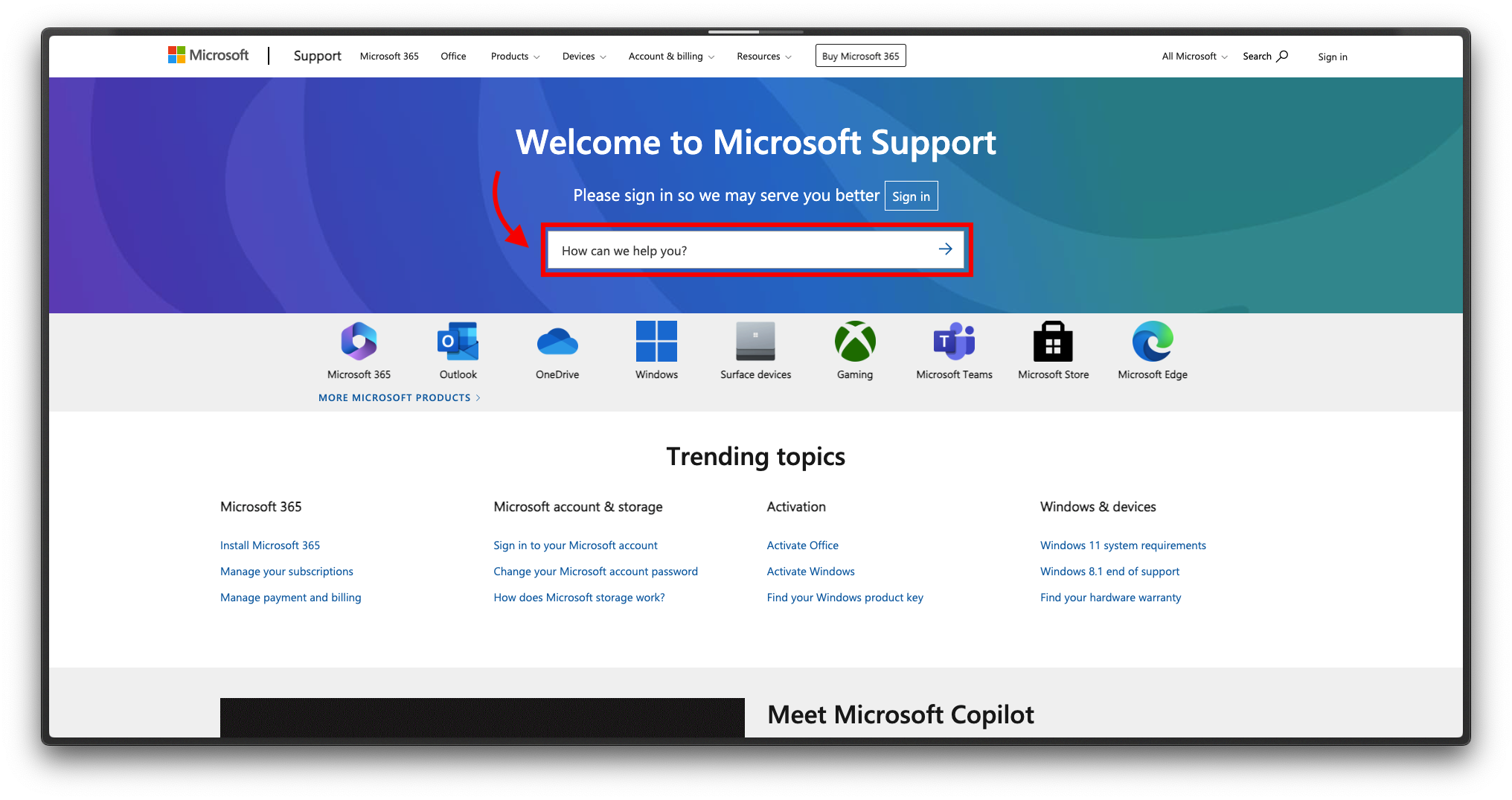 If you’re looking for online help, Microsoft’s own website is the best place to start. It is possible that the issue or the product you need help with has a common solution, and the support website might already have a documented fix for your problem.