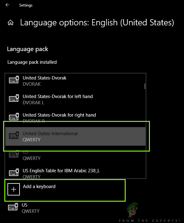 Whenever you install Windows 10 on your computer, you are more likely to get ‘English – United Stated’ Qwerty keyboard preinstalled. There might be a slight variation with the United Kingdom’s version depending on your location. Even though the majority of the users make use of the preinstalled keyboard for their work, we came across several instances where users wanted to switch to an International keyboard on their computer.