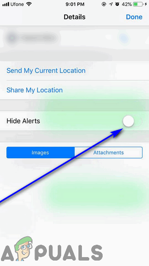 - Enable the Hide Alerts option using the toggle found right next to it.