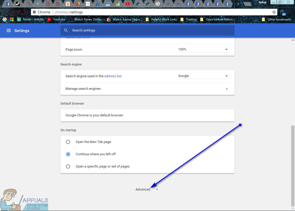 - Scroll down to and click on Advanced.