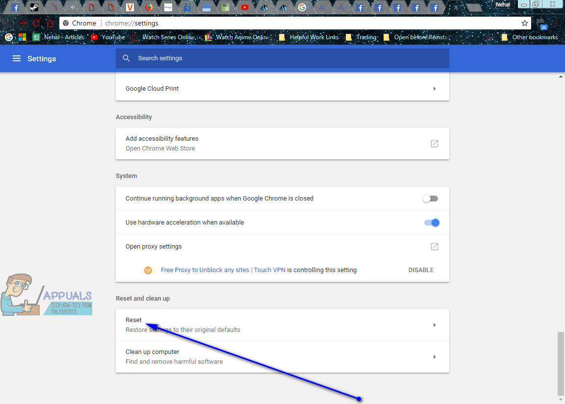 - Scroll down to the Reset and clean up section.