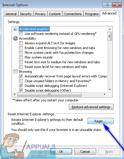- Under the Reset Internet Explorer settings section, click on Reset….