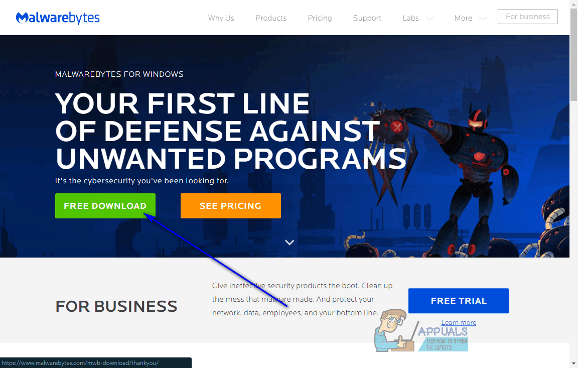 - Go here and click on Free Download to download an installer for Malwarebytes – arguably the premiere antimalware program for the Windows Operating System in the market right now.