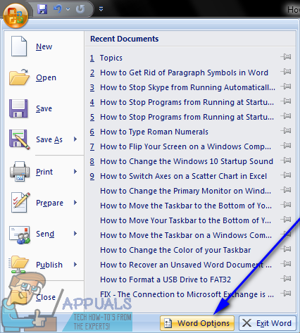 - Click on the Microsoft logo (if you’re using Word 2007) or File (if you’re using a newer version of Word).