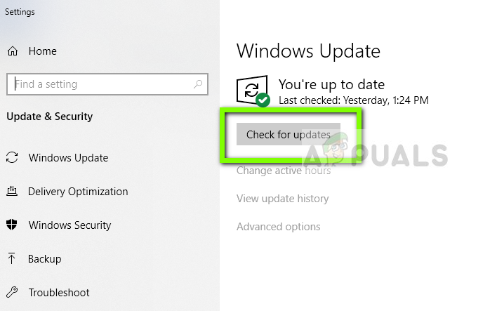 Run dialog: ms-settings:windowsupdate - Inside the Windows Update screen, click on Check for updates and follow the on-screen prompts to install every pending update. If prompted to restart, do so, and return to this menu once the startup is complete to ensure every update is installed.
