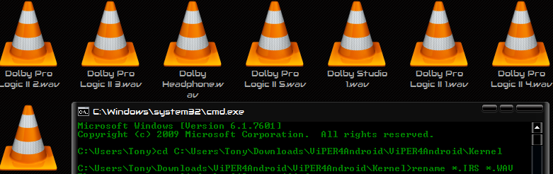 Now run this command in the command prompt: rename *.IRS *.WAV