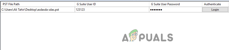 Clicking on the “Login Button”. Note: Make sure to enter the “Gsuite User ID” and “GSuite User Password” before performing this step.