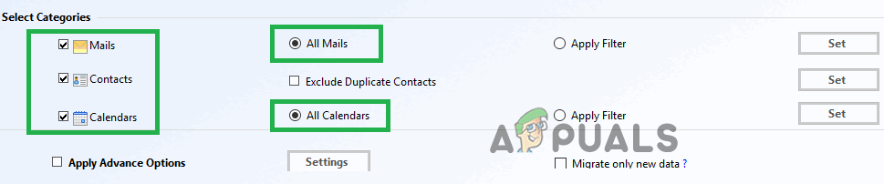 Selecting “Categories” by checking the boxes - Check the boxes for the “Categories” that you want to import and check the “Exclude Duplicate Contacts” box.