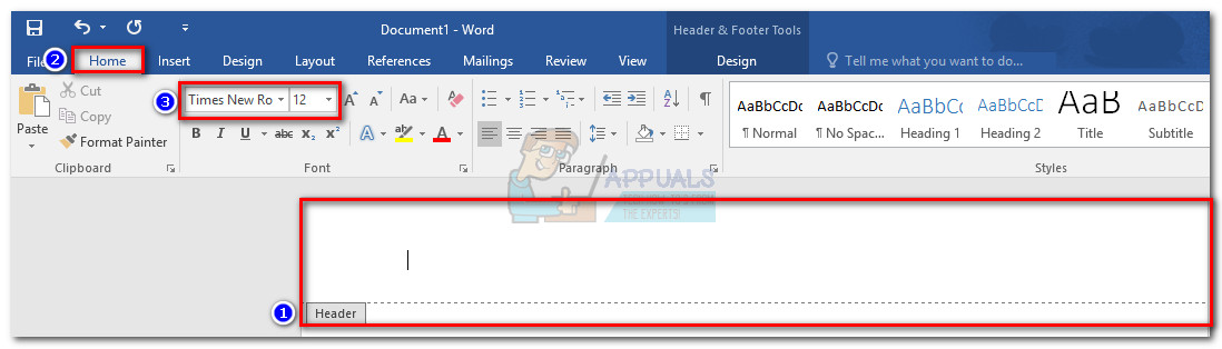 Set Font for Word Document - Keep in mind that Microsoft World will require you to set the font style and size for the header separately. To do this, double-click along the top of the page to open the Header & Footer Tool. Then, open the Home tab and set the font style and font size for the header.