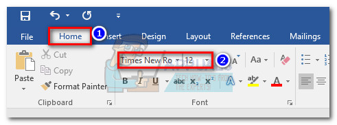 Set Margins of Word Document - Next, open the Home tab and set the font style to Times New Roman and the font size to 12 points.