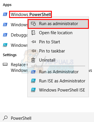 - Right click PowerShell from the search results and select Run as administrator
