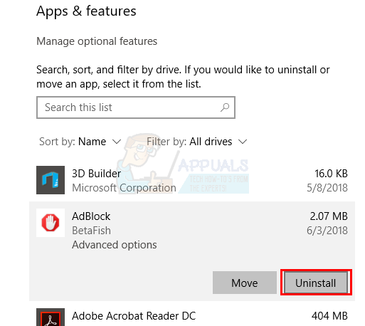 - Select your app and click Uninstall