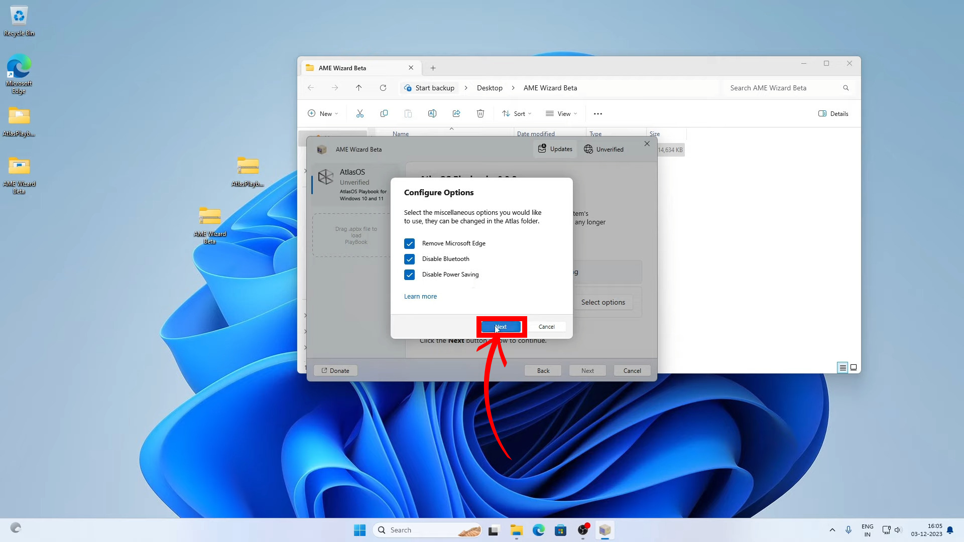 This will prevent the installation of unwanted Windows drivers which could hinder the process of installation of AtlasOS - Launch AME Wizard Beta.