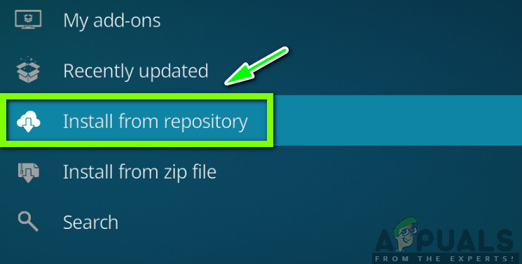 Installing from Repository - Select Kodi bae repository from the next menu.