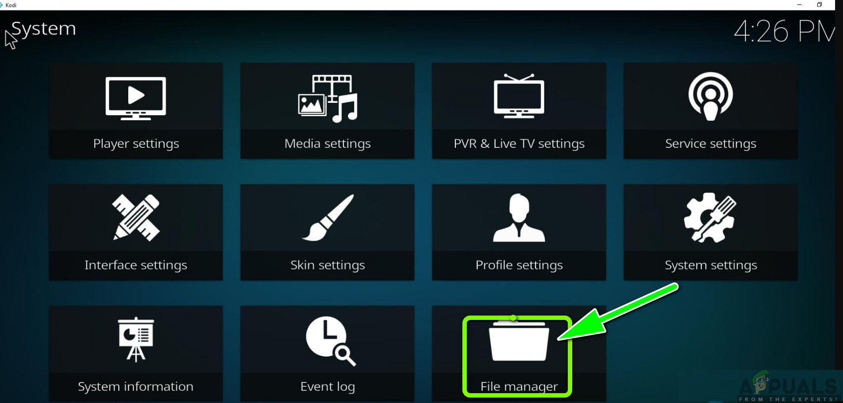 Kodi Settings - Once in the settings. click on File Manager.