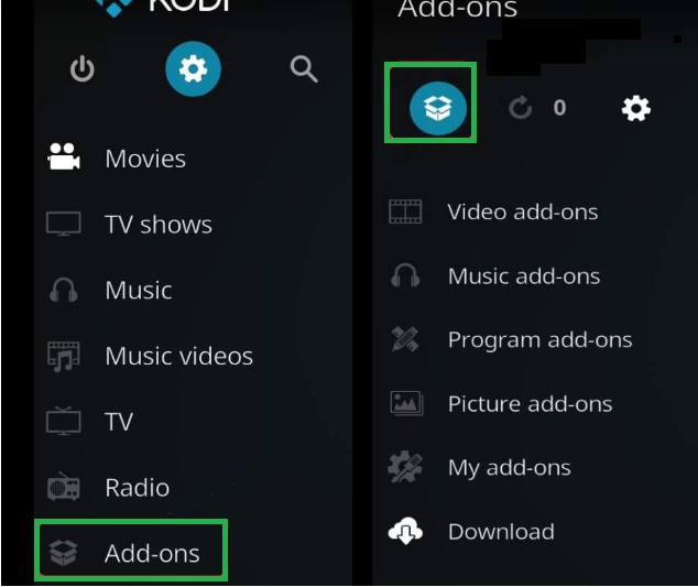 - Now, open Kodi, click Add-ons and Select the Package.