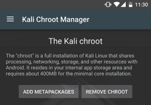 - Switch over to the NetHunter app and wait for the installation to complete. Then choose “Kali Chroot Manager”, and select “Add Metapackages”, and press the “Install & Update” button. When it’s done, reboot your phone.